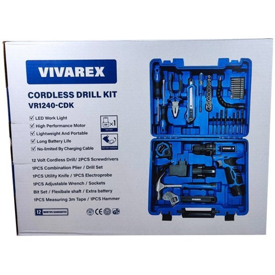 کیت دریل پیچگوشتی شارژی ویوارکس مدل VR1240-CDK یک مجموعه کامل و کاربردی برای انجام کارهای فنی، خانگی و تعمیرات روزمره است.